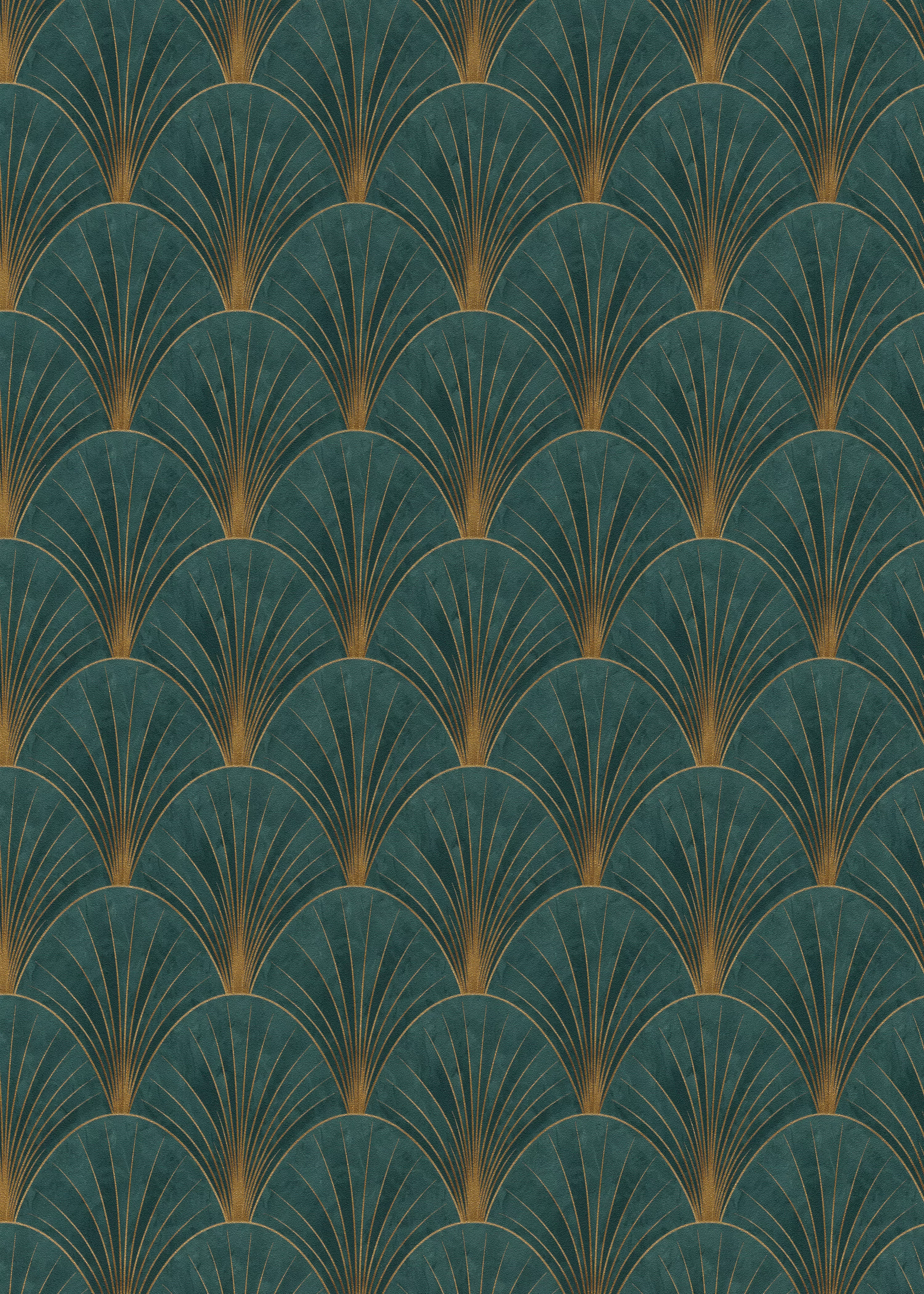 Zöld-arany színű legyezőmintás Vlies-vinyl tapéta, Erismann Elle Decoration 4, 10451-19