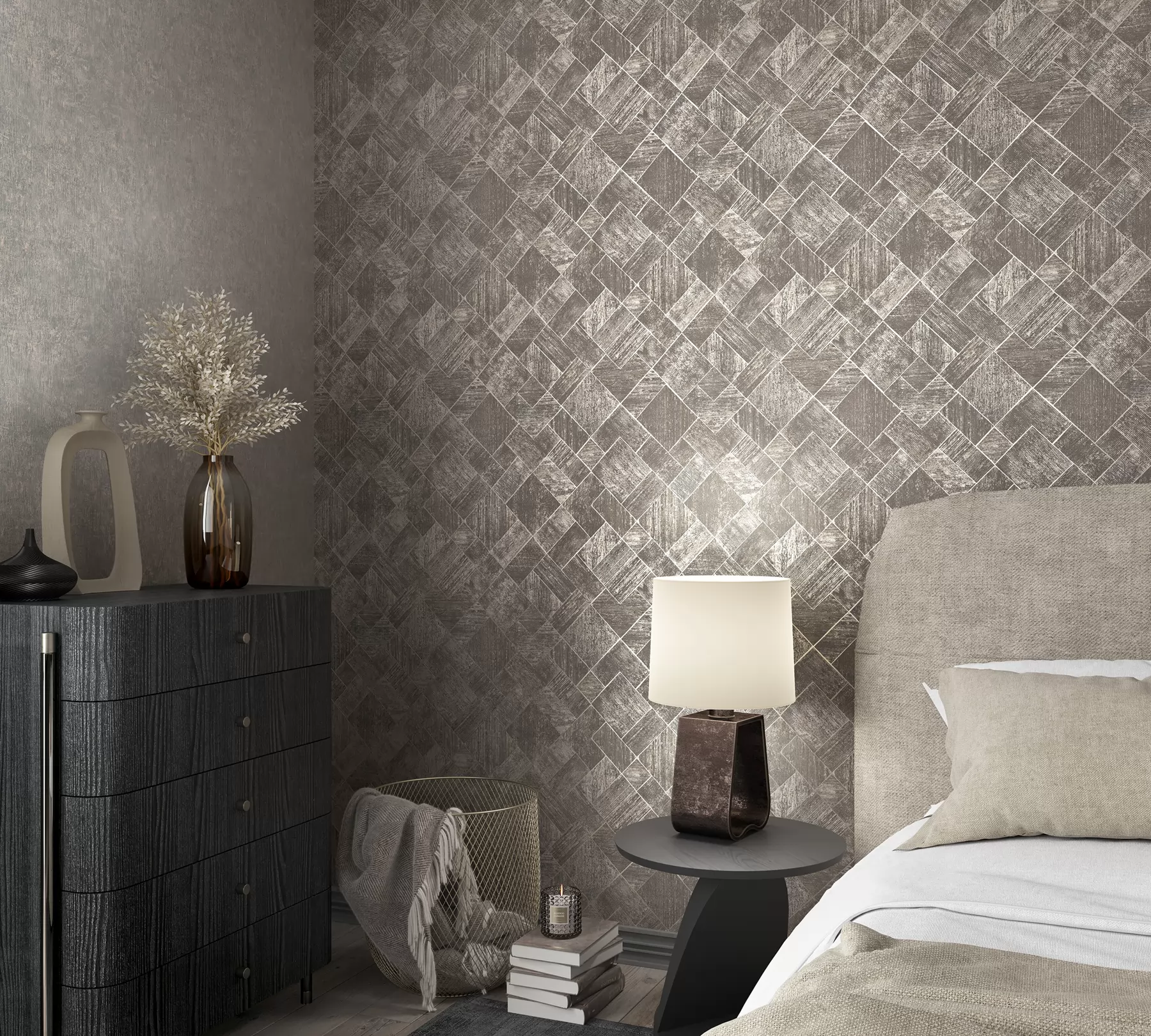 Szürkésbarna színű geomterikus mintás Vlies tapéta, Ritus 35511