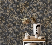 Sötétszürke alapon arany színű növényi mintás Vlies tapéta, Play of Light 10415-15
