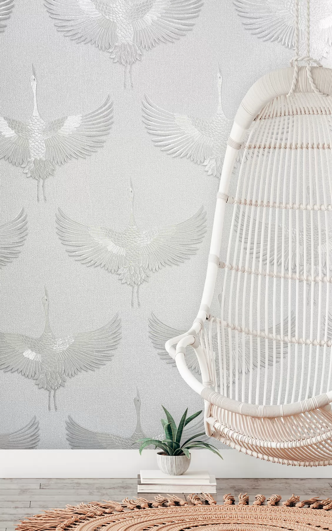 Tört fehér színű darumadár mintás Vlies tapéta, Kumano 1834528