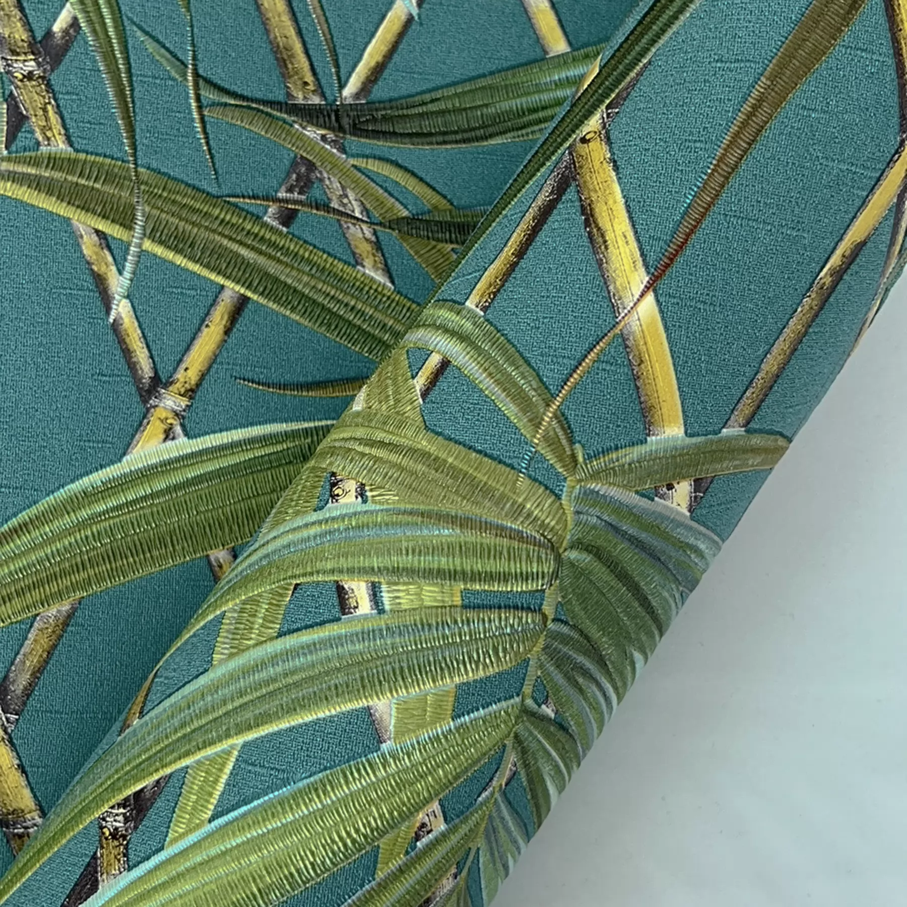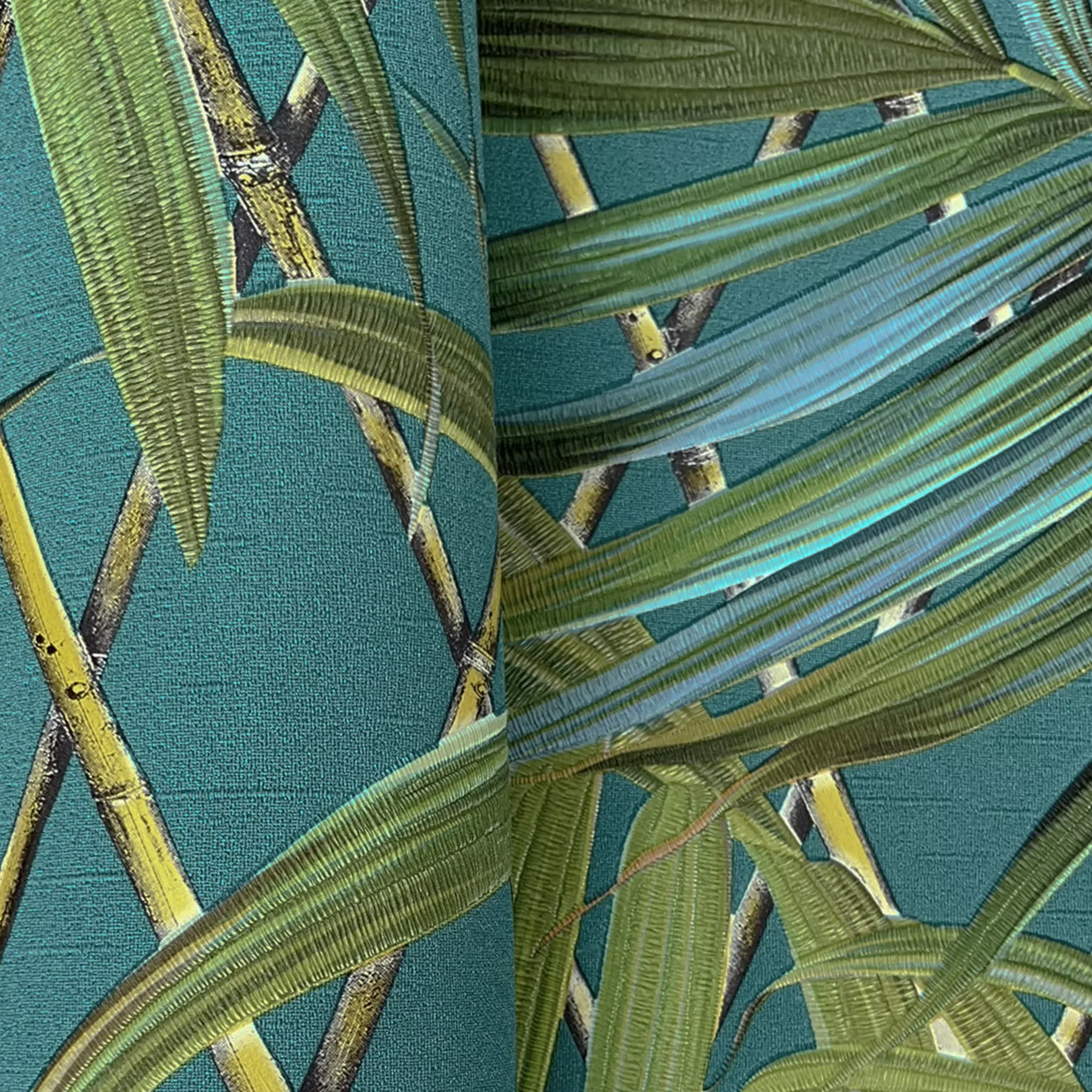 Türkiz színű levélmintás vlies-vinyl tapéta, Eldorado 15515